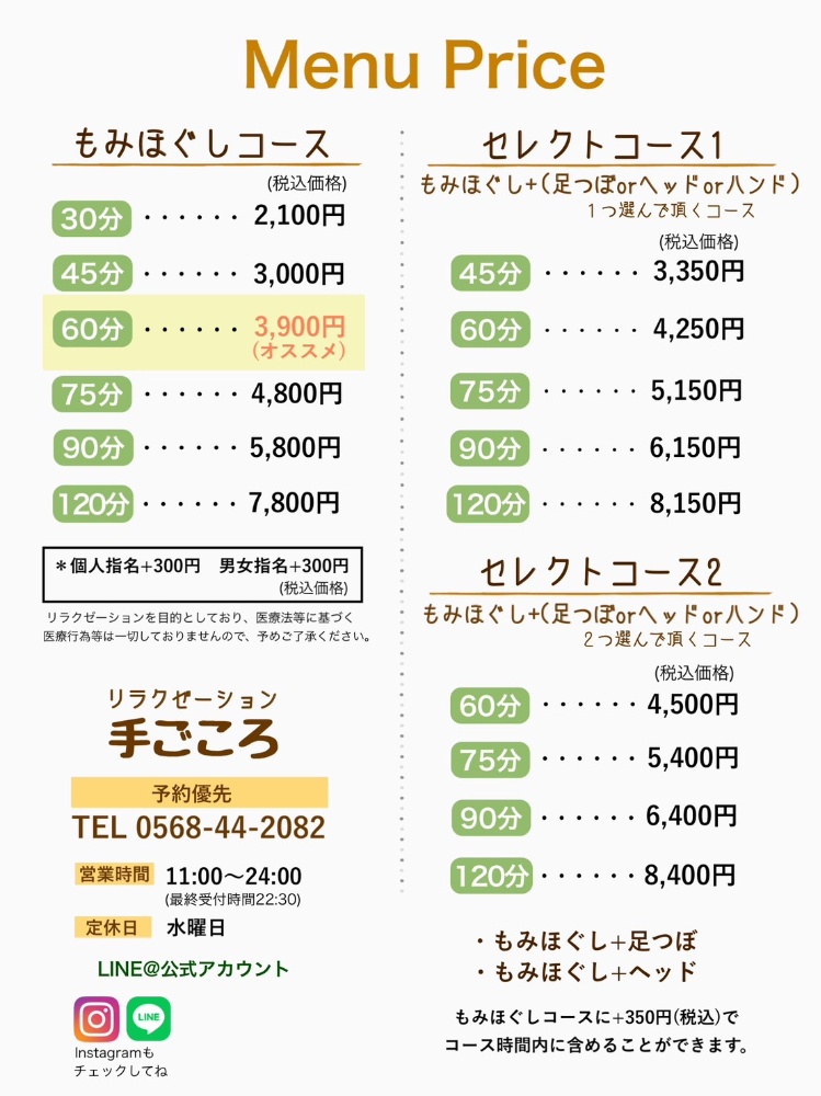 当店の施術は、国家資格を必要としないリラクゼーションを目的に行うものであり、医療法に基づく医療行為・治療行為は一切行っておりません。